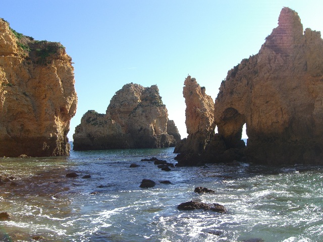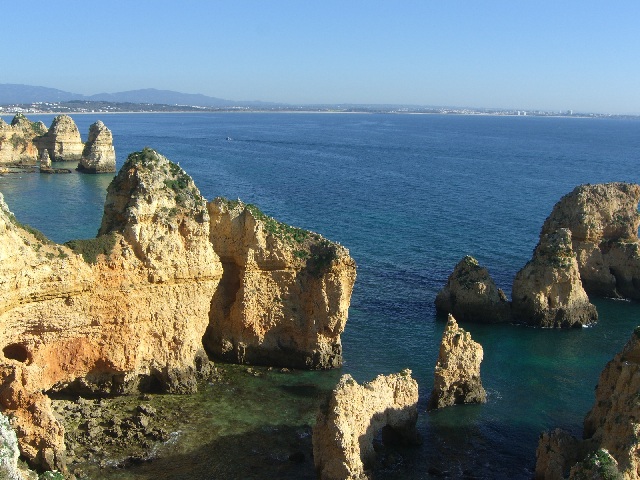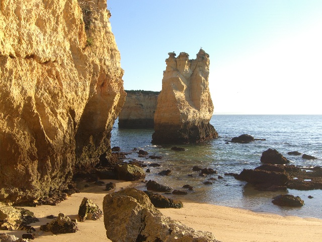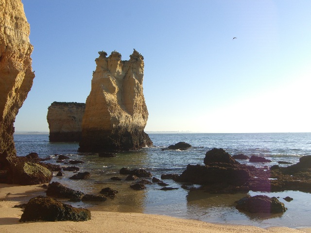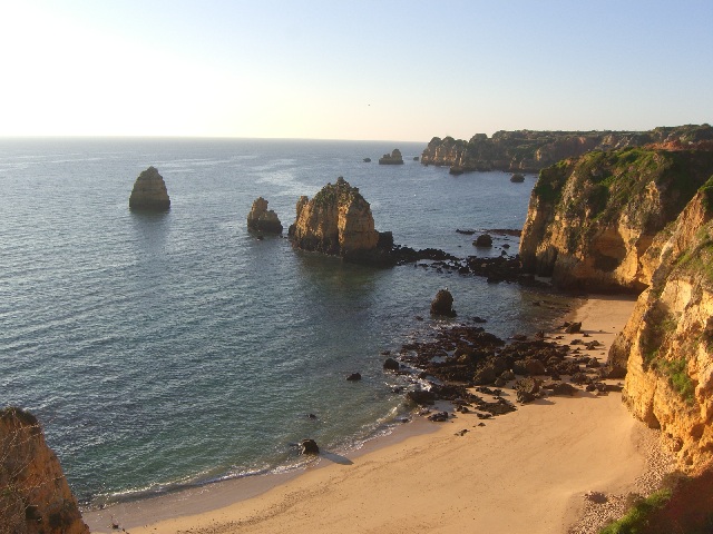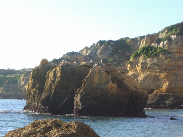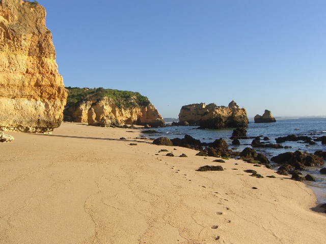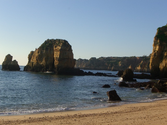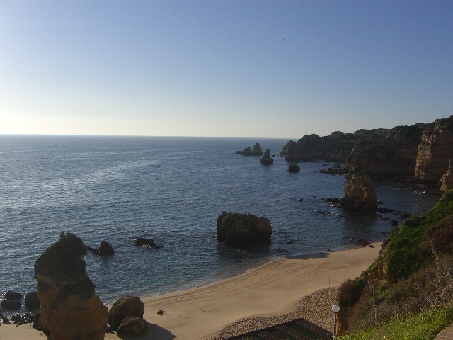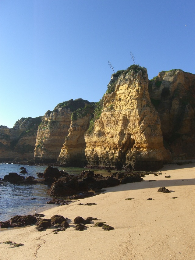 There are few coasts more beautiful than the Algarve Coast near Lagos. I snapped all of the photographs below early in the morning on 6 February 2008. Es gibt wenige Küsten der Welt, die schöner sind als die Algarve in der Nähe von Lagos. Die Fotos hab’ ich alle früh am Morgen am 6.2.08 geknipst. |