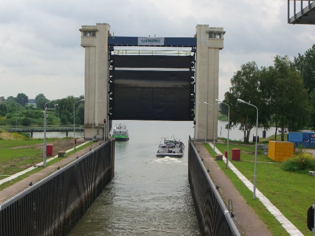 Holland, or the Netherlands, as they like to be called, is a very flat land filled with canals and locks. This lock, near the city of Nijmegen, opens from the Rhine River into a canal that continues south into the countryside.