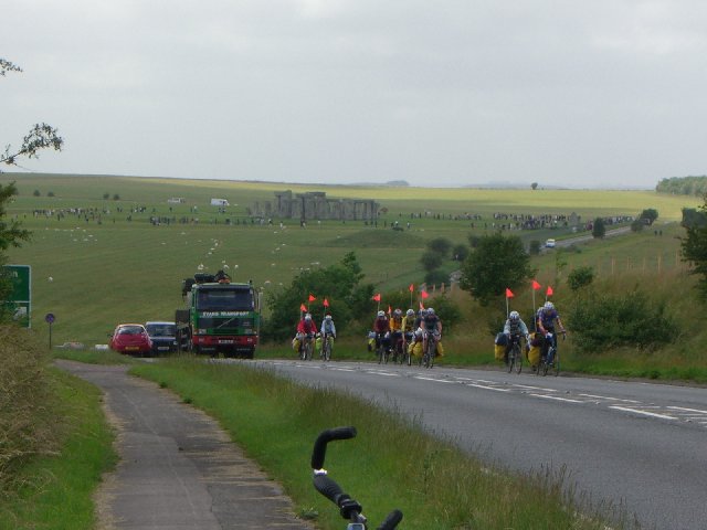 Near Stonehenge, I was surprised to see a group of about 40 cyclists holding up traffic with about 50 vehicles behind them. No joke. Except for the National Cycle Paths, which aren’t many, you either have to ride the bicycle on the road or on the footpath (which is illegal in England). On busy highways like this one, I choose to ride on the footpath. The same day, I met another biker coming toward me from the other direction on the footpath -- a policeman. He chose the safer path as well. So much for that silly law.