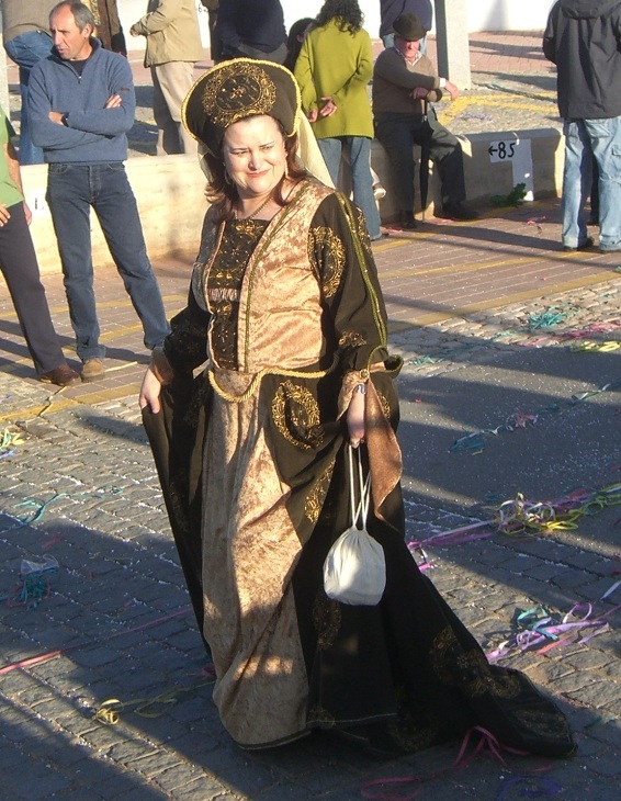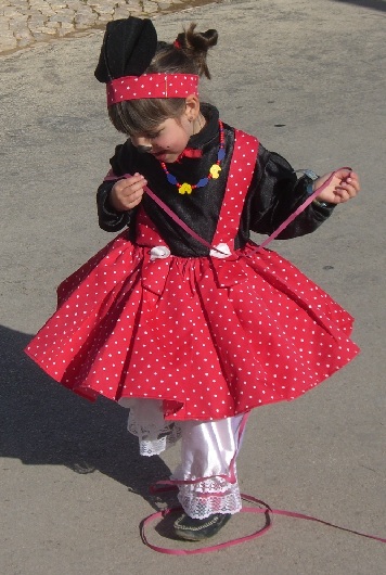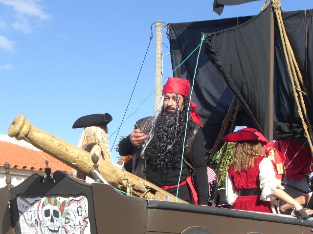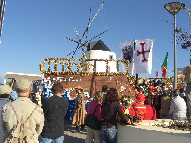 The Portuguese take Mardi Gras seriously and dress up in the most colorful costumes I’v ever seen. In the schools, the children celebrate as well, and there are other events, such as sky diving contests, roller blading and cycling races, and nearly everything else you can imagine. Since the climate is relatively warm in February, the people turn out in droves anytime a loudspeaker fills the air to announce that something is going on. Die Portugiesen nehmen Fasching ganz ernst und bekleiden sich in sehr vielen farbigen Kostüme. In den Schulen feiern auch die Kinder, und es gibt auch andere Veranstaltungen, z.B. Skydiving, Inlineskating, Radrennen, und fast alles, was Du dir denken kannst. Weil das Klima relativ warm in Februar ist, die Leute kommen in Massen jedes mal wenn ein Lautsprecher irgendwas von sich gibt. |