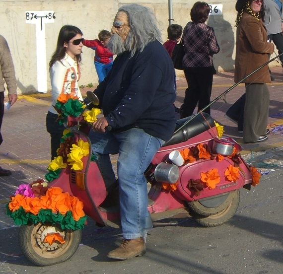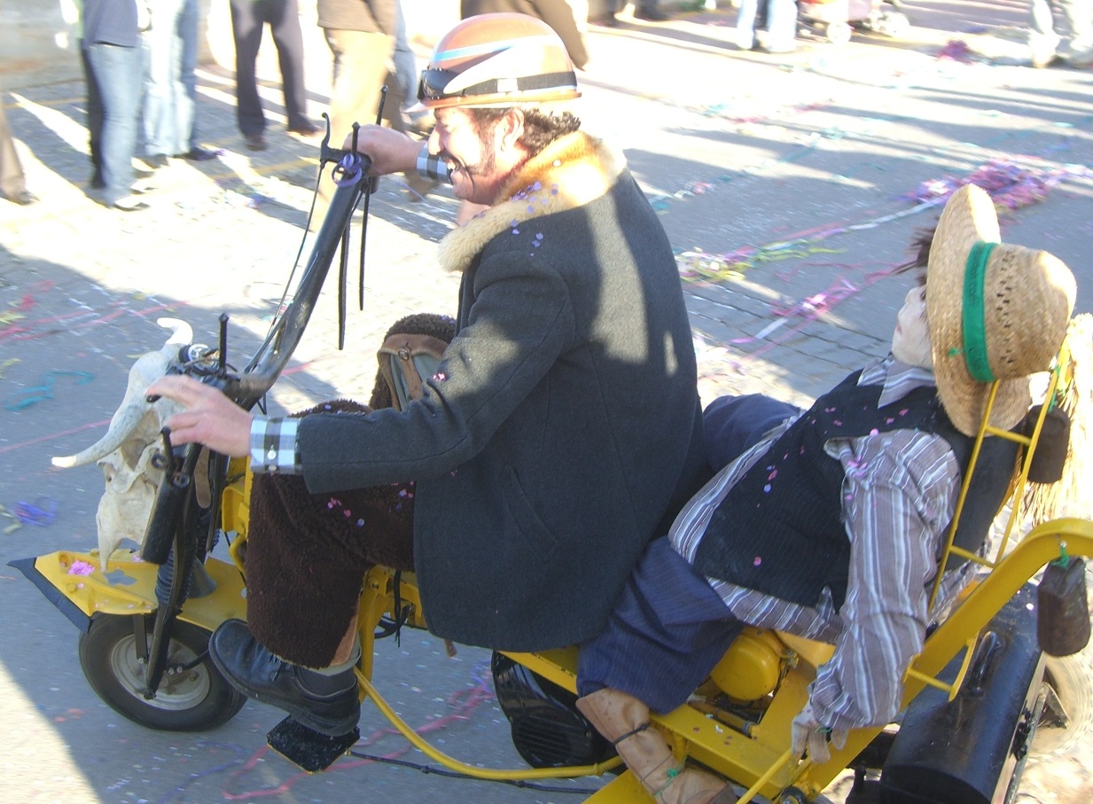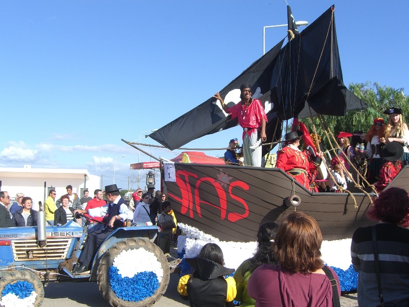 On “Fat Tuesday” I decided to visit Odiaxere near Lagos for the Mardi Gras parade. I expected a long parade with entrants from all over the region. That’s not what it turned out to be, but I wasn’t disappointed. Normally, a parade goes from Point A to Point B, and that’s the end of it. Not here. The participants traveled around a triangular route in the city and the same theme would show up again and again. Occasionally, a new float would join the parade and add something new to the craziest merry-go-round parade I’ve ever seen. The explanation -- they only do it once a year, so they want to make the most of it. Am Fasching Dienstag, bin ich nach Odiaxere geradelt für den Umzug. Ich habe einen grossen Umzug erwartet mit vielen Teilnehmern von überall in der Region. Das ist nicht passiert, aber ich war nicht enttäuscht. Normalerweise, geht ein Umzug von Punkt A bis Punkt B, und das war’s. Nicht hier. Die Teilnehmer sind um eine dreieckige Route in der Stadt rumgefahren, und das mehrmals. Ab und zu kam etwas neues dazu und mehr zum verrücktesten Umzug der Welt beitragen. Warum? Sie machen’s nur einmal im Jahr und sie wollen das Beste daraus machen. |