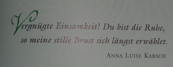 “Pleasurable Loneliness! You are the quietness, my silent breast so long has sought.”