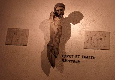 After attending the concert in Echternach, I revisited the basilica to take a photograph of a sculpture of Christ that was partially destroyed during WWII. The lighting effect of the shadow makes it look like a person in prayer.